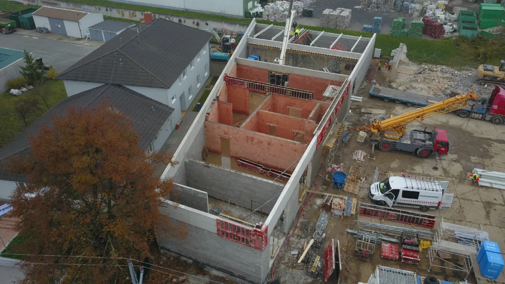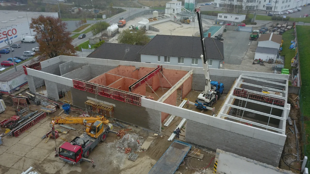 Stavba bytového domu je konstrukčně provedena z železobetonového skeletu, monolitických stropních konstrukcí a železobetonových pilířů. V interiéru se uplatňují i prvky z pohledového betonu. Vizualizace zajistila firma © Knesl Kynčl architekti.