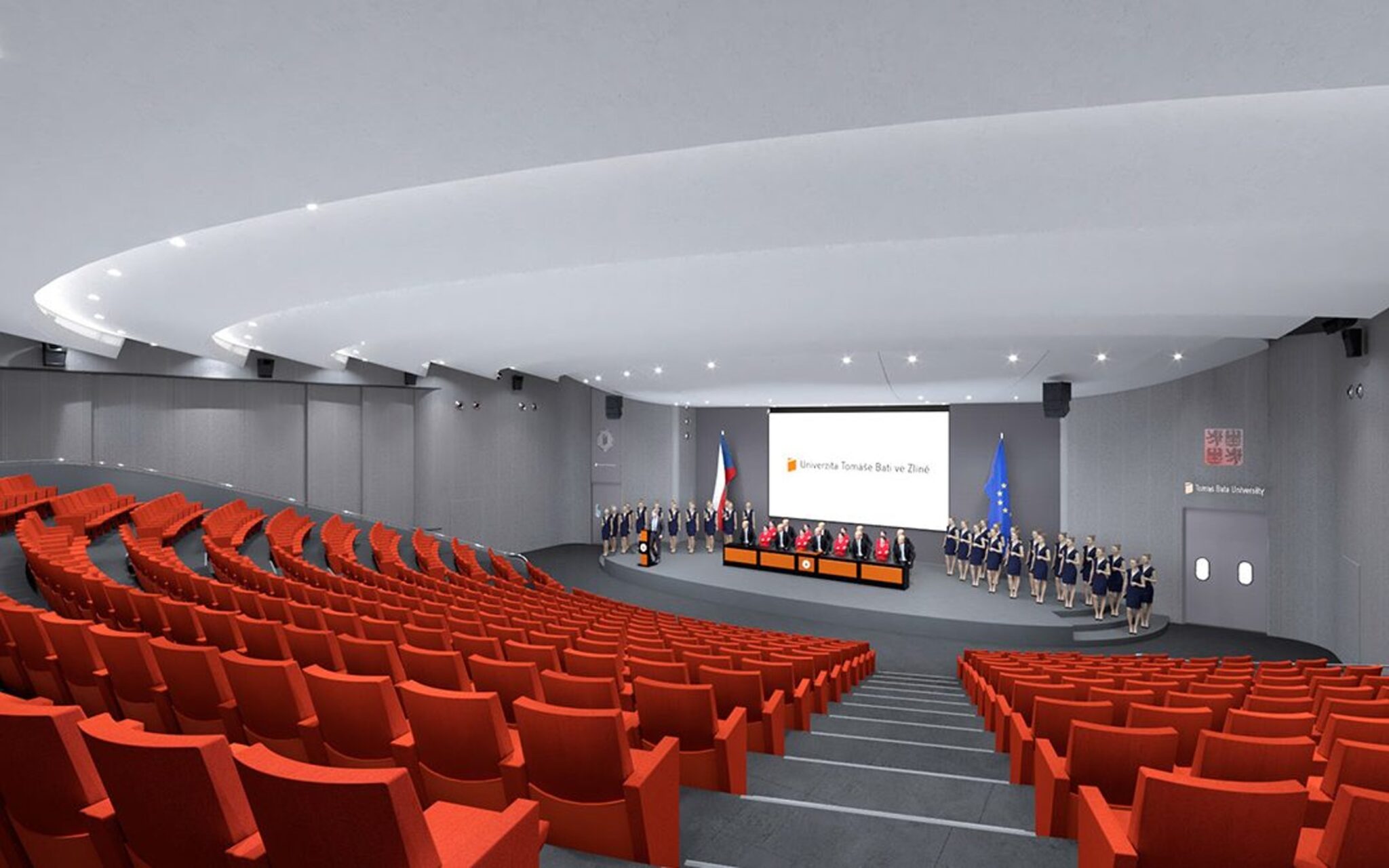 Aula Univerzity Tomáše Bati prochází rekonstrukcí. Únorem letošního roku jsme zahájili  technicky velmi náročné práce. Vnitřní prostory jsou po pětadvaceti letech opotřebené a vybavení zastaralé. Práce by měly být hotové letos v dubnu. Architektonickou studii pro aulu zpracovala architektka a zlínská rodačka Eva Jiřičná, která pro univerzitu navrhla už vzdělávací komplex, je také autorkou nedalekého kongresového a univerzitního centra. Aula sloužila více než pětadvacet let. Konaly se zde promoce, slavnostní shromáždění akademické obce nebo konference.